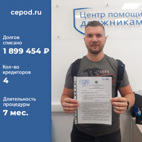 Списано долгов на 1 899 454 р. за 7 месяцев. Кол-во кредиторов - 4 шт.